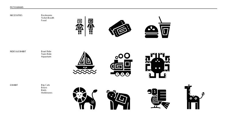 The goal of this project was to recreate pictograms and a logo for a zoo located in Morelia, Michoacan in Mexico. The icons and logo design came from the inspiration of meso American sculptures that have very geometric shapes as well as the spirit animals in the Mexican culture called Alebrije.